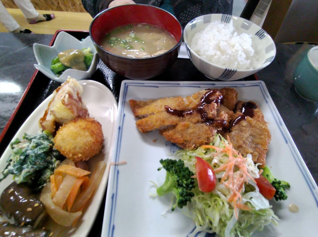 今回はトンカツと、ワンプレート(鶏肉の黒図あんかけ+焼魚)にしました。