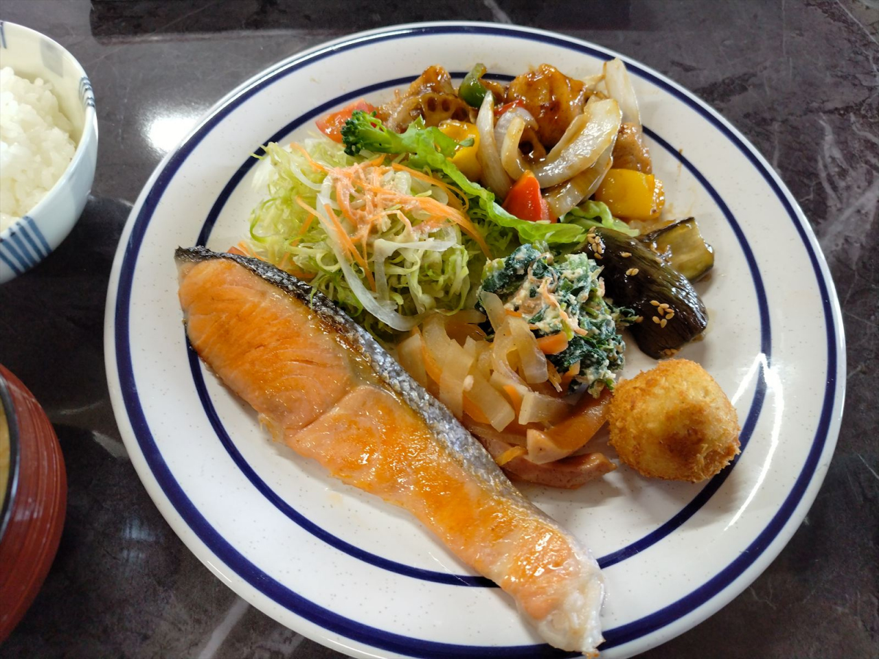 いずれもメインの料理が美味しくて食べ応えがあるのですが、副菜が多種類付いていて、ほぼメインと同じ量くらいありました。食べ応えがあるし、栄養のバランスもよく考えられています。