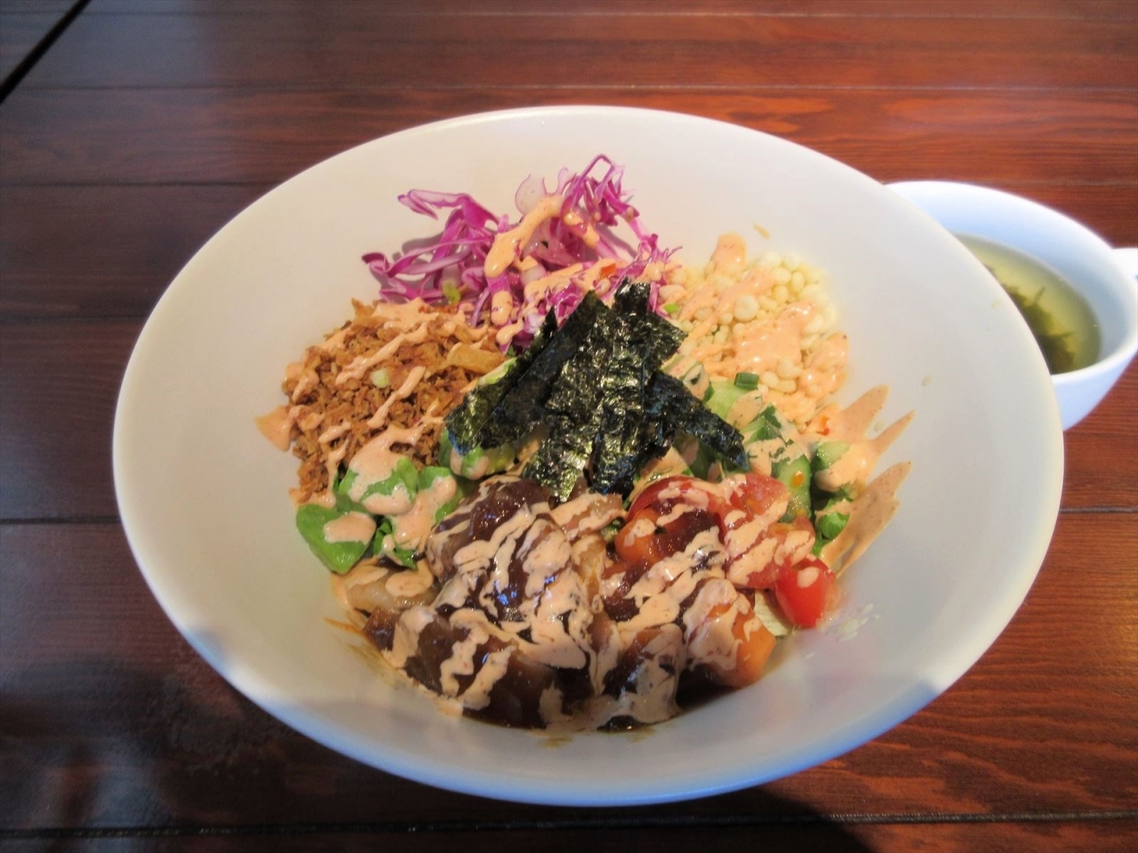 今回は、ハワイのソウルフードという”ポキ丼”を食べてみました。海鮮丼のような丼ですが、野菜なども入っており、さっぱりとした味わいですが、見た目以上に食べ応えがありました。