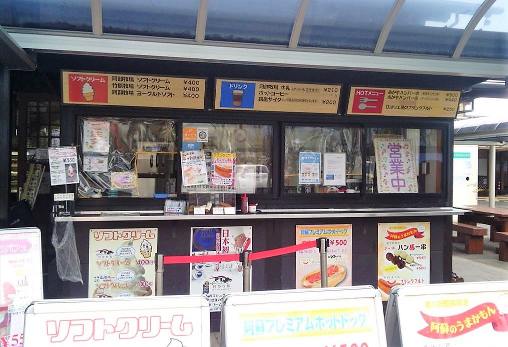 食事処はないのは、阿蘇市の中心街にほど近く既存の店を圧迫してしまうからかも知れません。ソフトクリームなどの販売があります。