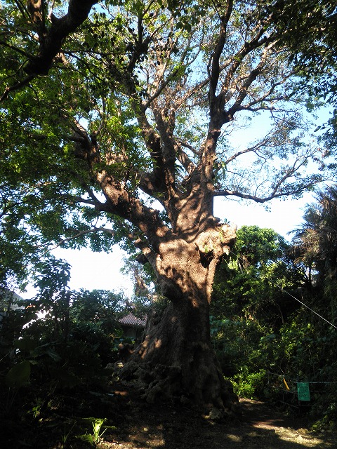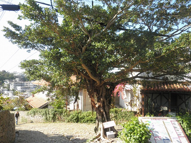 首里、金城町石畳道から300メートルほど小さな道を進むと、住宅街の奥に林が見えます。大アカギが何本かあって、すぐ上の首里城のにぎやかさが嘘のように静かで落ち着いた雰囲気の場所です。自然の豊かさや力が感じられて、ここにいると、心が穏やかになるような気がします。