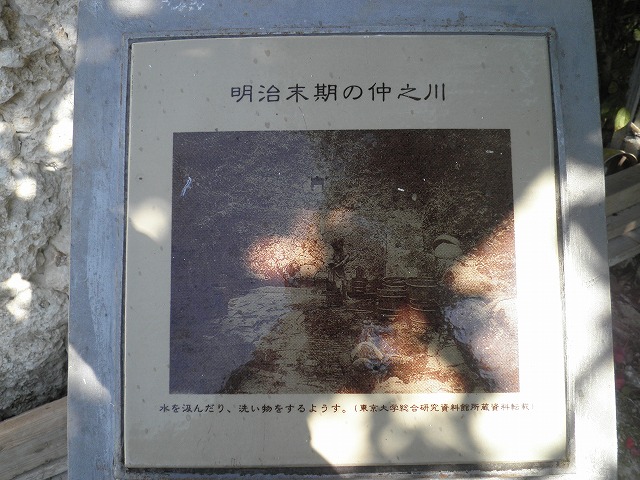 金城町石畳の半ばに「金城村屋」という無料休憩所がありますが、そこから右(西)方向に少し進むと、「仲之川」があります。