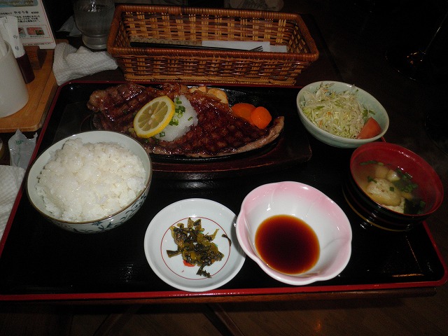 豊後牛がウリらしく、サーロインステーキもありました。こちらは3,000円ですが、肉は大きくて柔らかくて、確かに美味しかった。