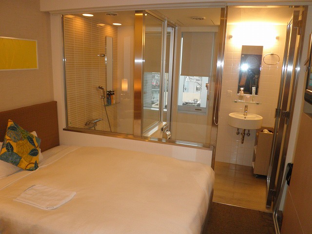尚、バス・トイレと部屋の間には、ロールスクリーンがあるので、二人で利用しても問題ないと思います。