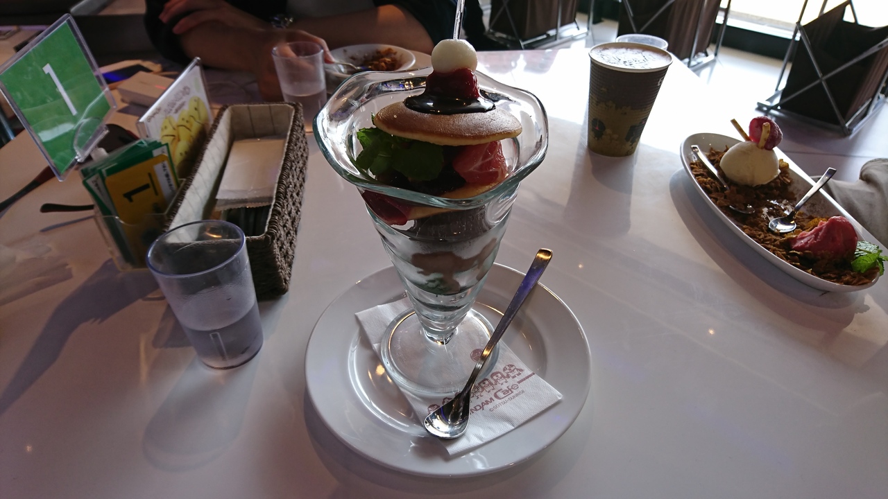 カフェに入り、ア・バオ・ア・クーパフェ(宇宙要塞を模したもの)を注文。アイスクリームやどら焼きなどが詰め込まれており、満足の一品でした。- 旅行時期