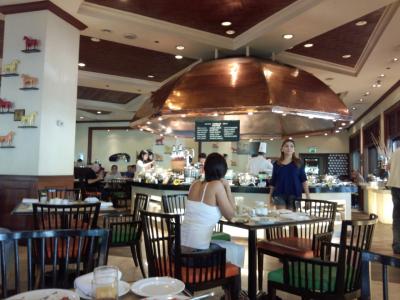 朝食ビュッフェレストランです。ライブキッチンがありました。つたない英語...