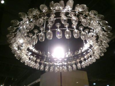 注目したいのは、ワイングラスを巧みに利用した天井の照明。