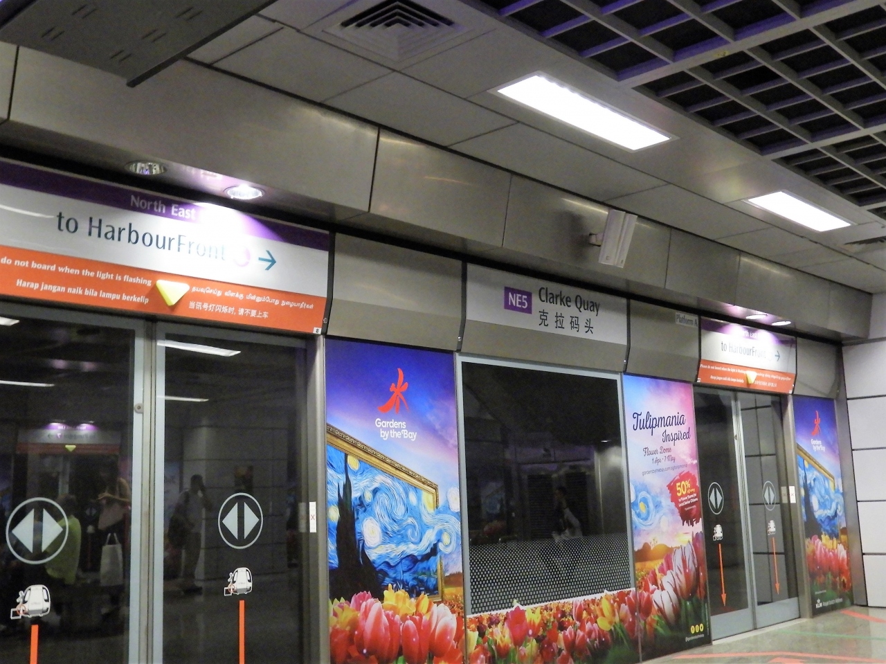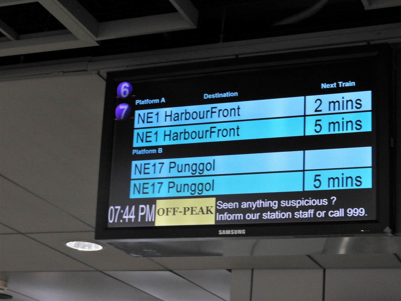 北東線とダウンタウン線二線乗り入れているので当然ですが、他の駅よりも人数が多かったです。シンガポールのMRTは、ここに限らず乗り換え案内、出口案内がしっかりと出来ています。