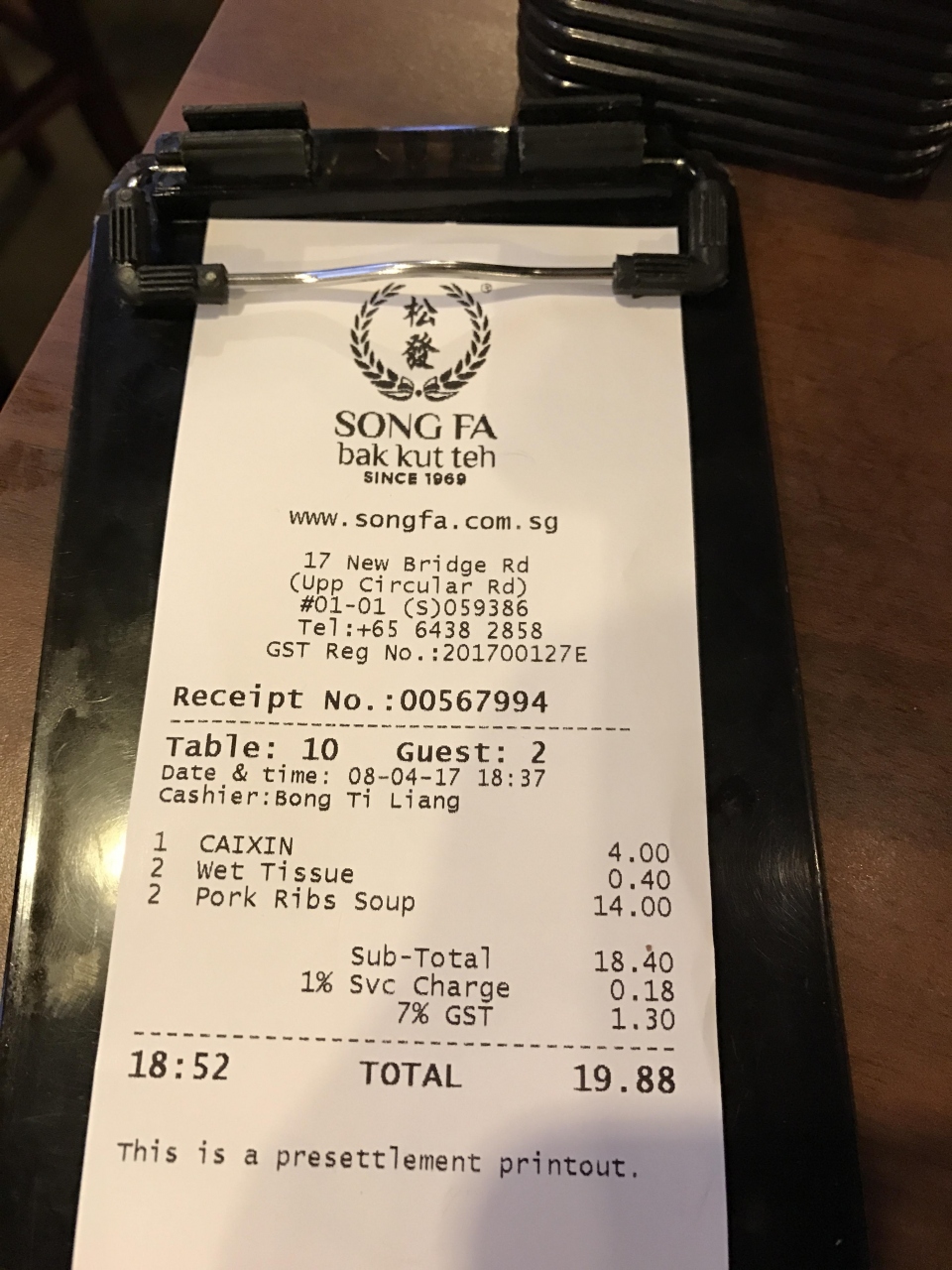 松發肉骨茶 ソンファ バクテー (ニューブリッジロード17店) シンガポール
