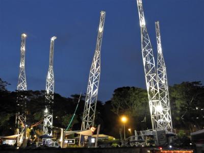 ここに限らず、シンガポールではカラフルにライトアップはしても、日本の様にネオン管の点滅、激しい色の入れ替わりが行われず落ち着いた雰囲気を維持させています。- 旅行時期