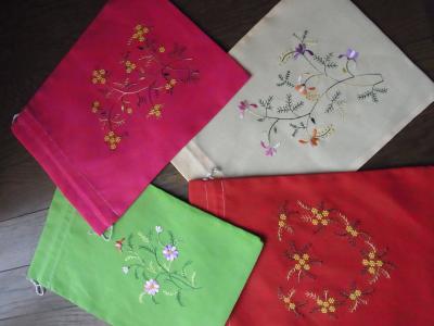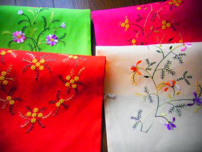 おみやげはゴマクッキー空港で買うよりかなり安いとのこと。手刺繍あるきんちゃく袋でした。