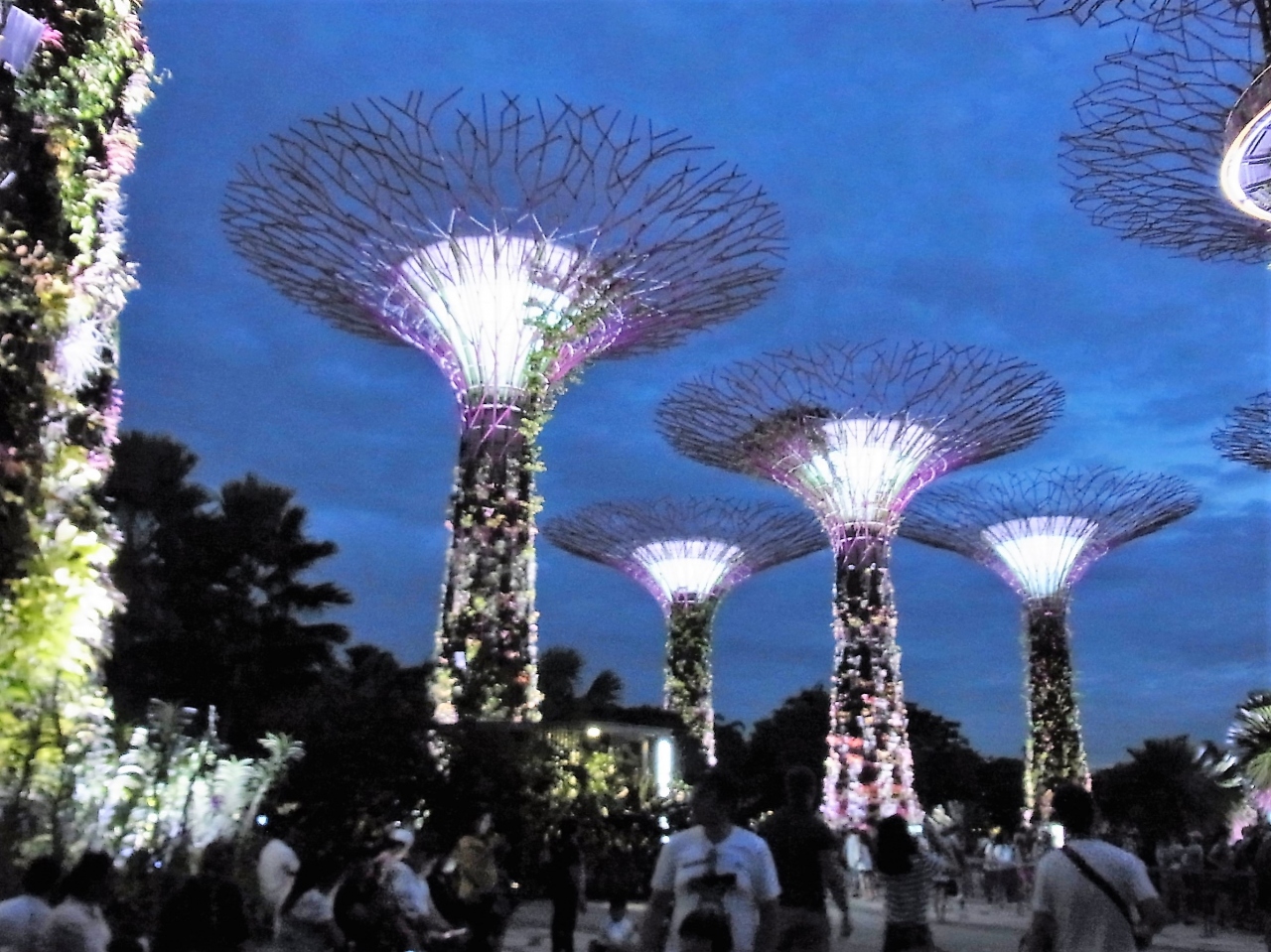 何時からOCBCガーデン・ラプソディ(光と音のショウ)が始まるか知らず、ガーデン・バイ・ザ・ベイの空中遊歩道の列に並んでいるとOCBCガーデン・ラプソディが始まる。