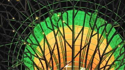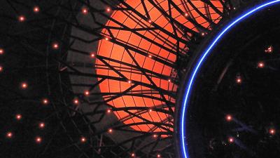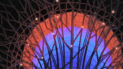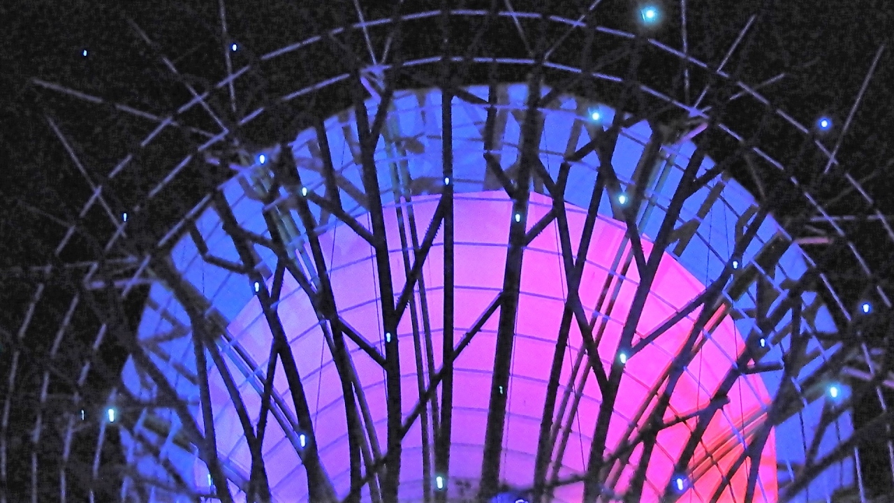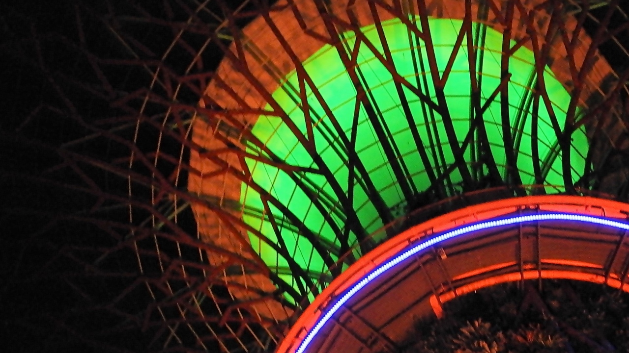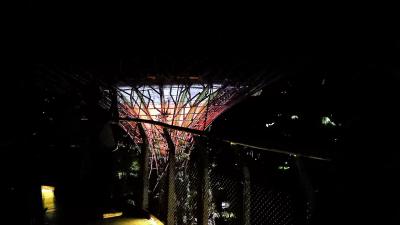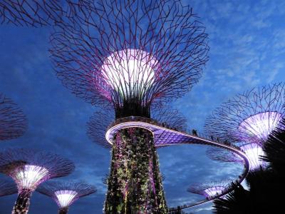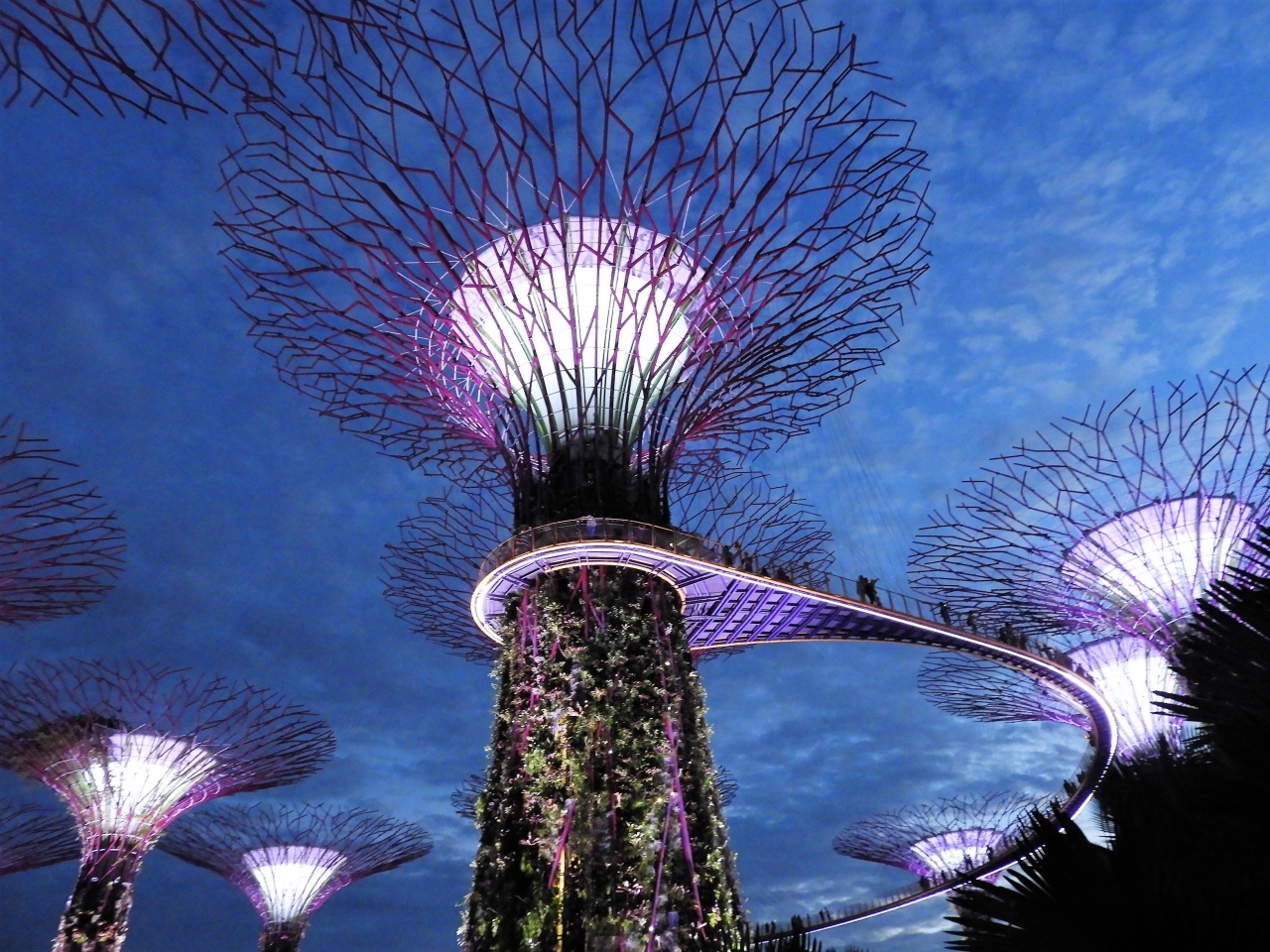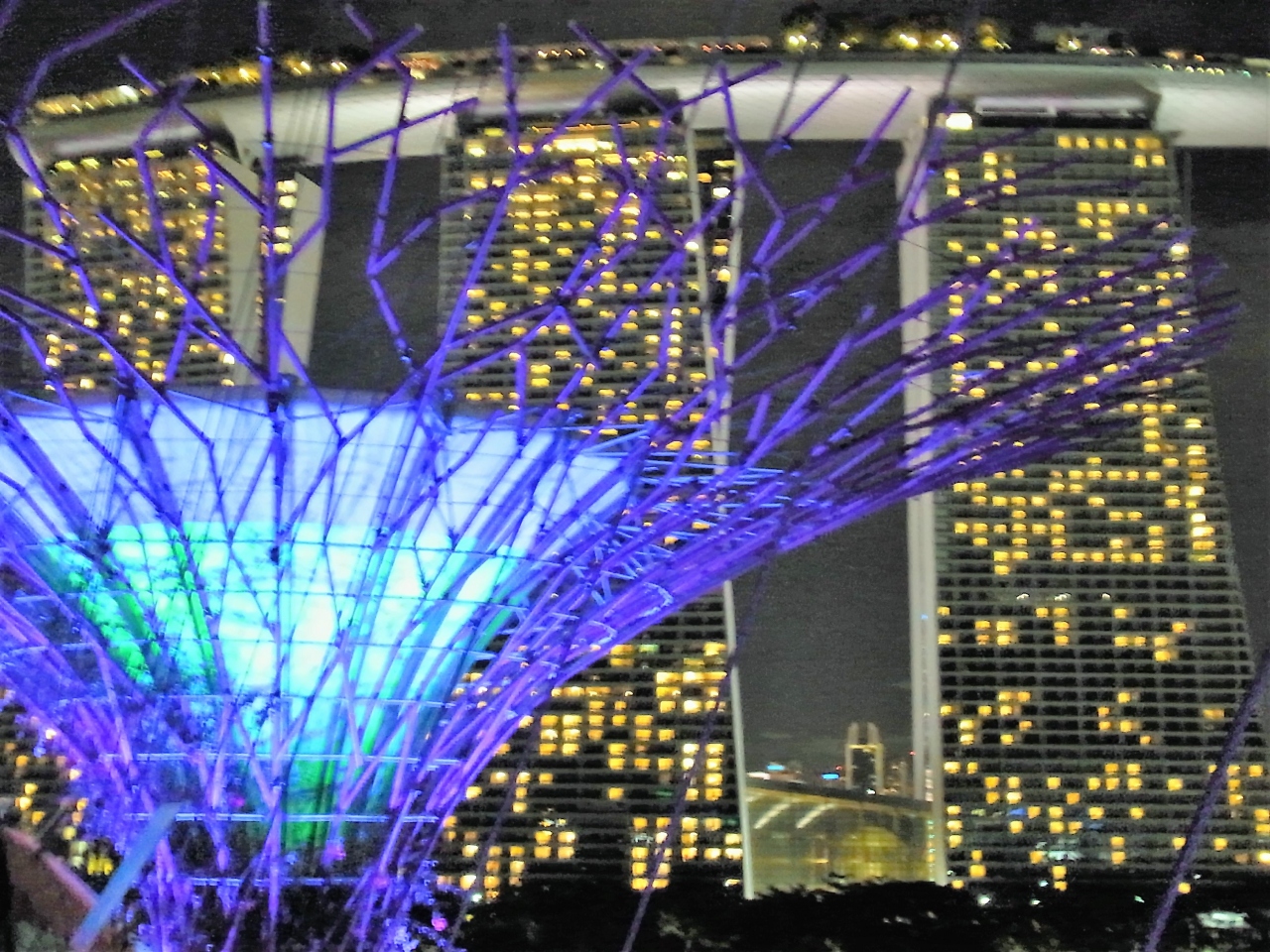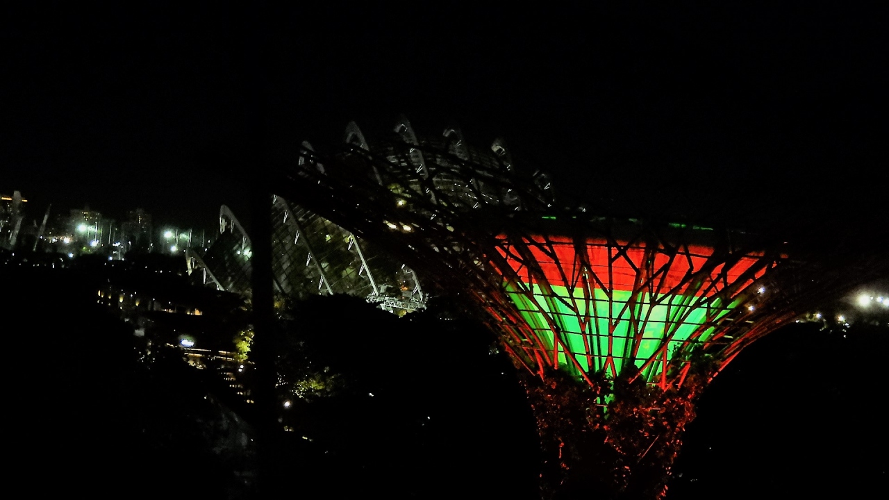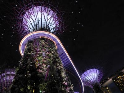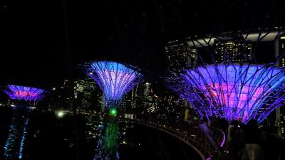何時からOCBCガーデン・ラプソディ(光と音のショウ)が始まるか知らず、ガーデン・バイ・ザ・ベイの空中遊歩道(OCBCスカイウェイ)の列に並んでいるとOCBCガーデン・ラプソディが始まる。