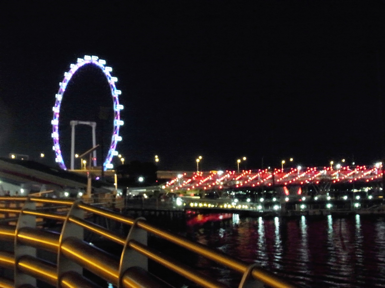 上で見たい人は良い場所を事前に確保する事をお勧めします。と言うと簡単ですが、空中遊歩道(OCBCスカイウェイ)は一方通行、かなり図々しくしなければならず難しいです。