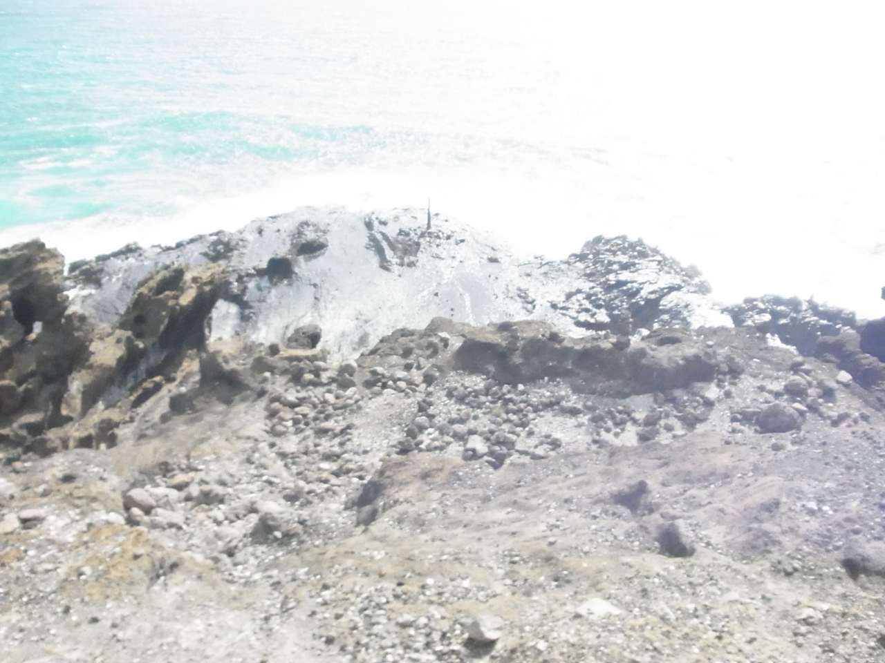 バスを降りたとたんに強風が体を襲う。風に顔を向けることができない。ガイドは海岸へ誘導するが、妻は悲鳴を上げ進まない。ようやく展望台に着き風をよけながら見たが波が激しく岩にぶつかり砕け散っている景色だった。