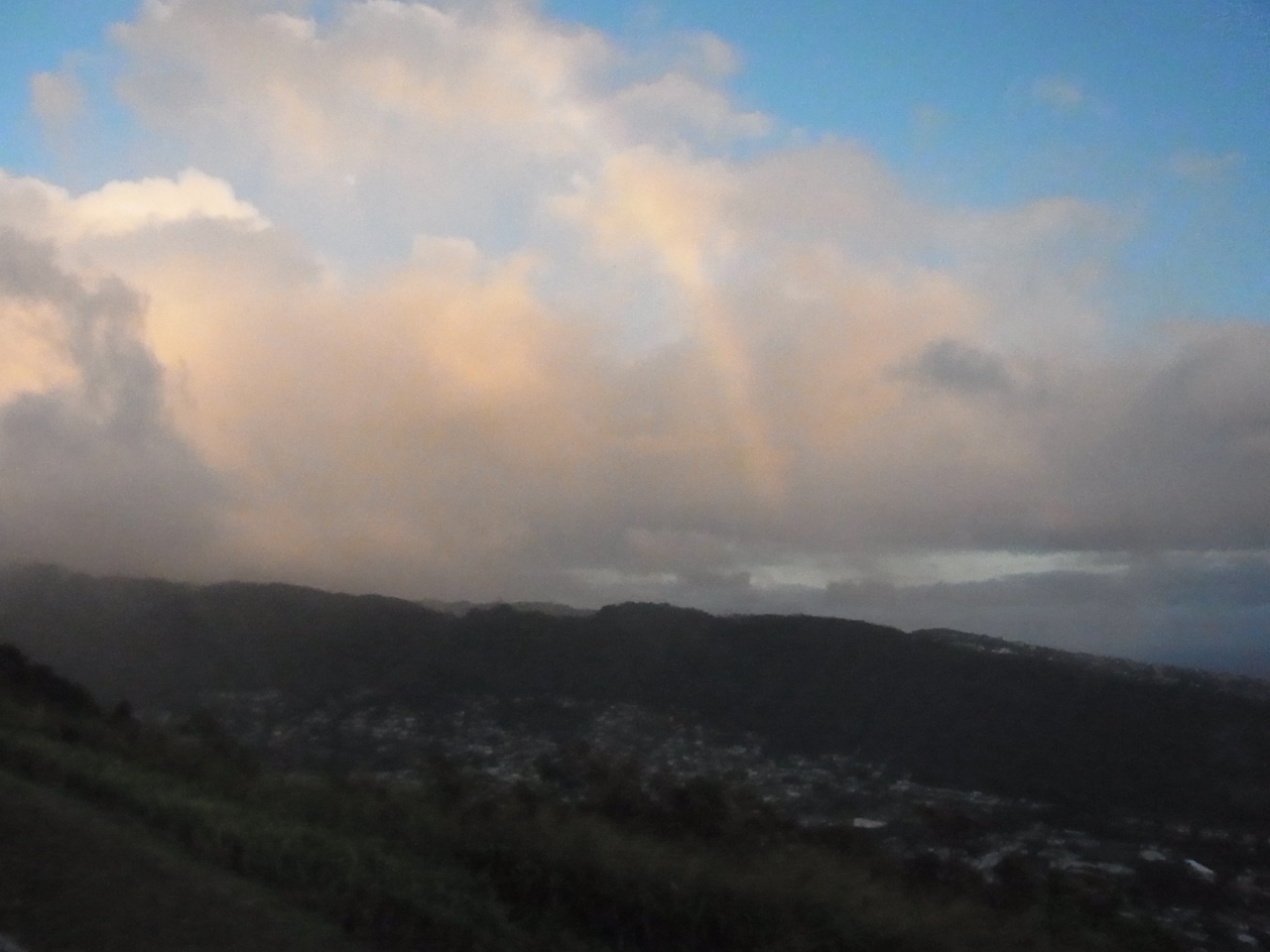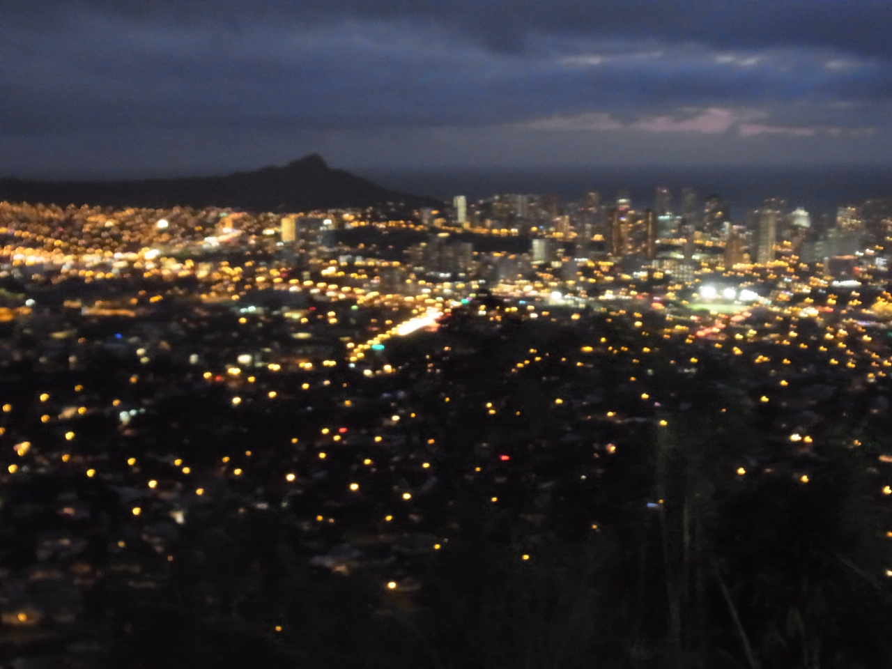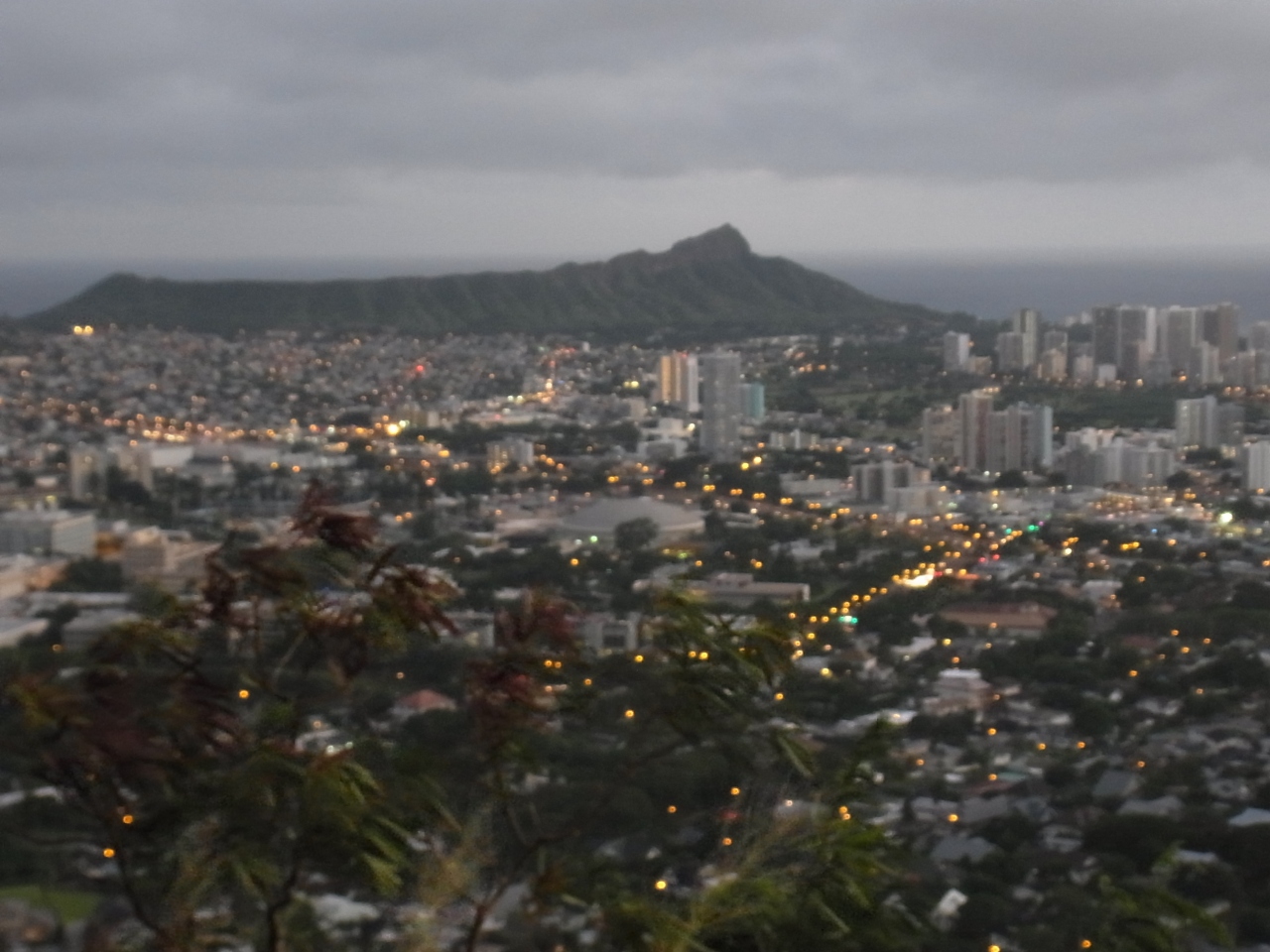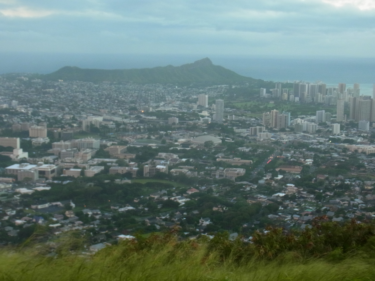 まだ日が沈む前に展望台へ到着。何時もかは解りませんがが山なので強風が吹いていました。ダイヤモンドヘッドから、ワイキキ方面まで展望の良さは良く解ります。