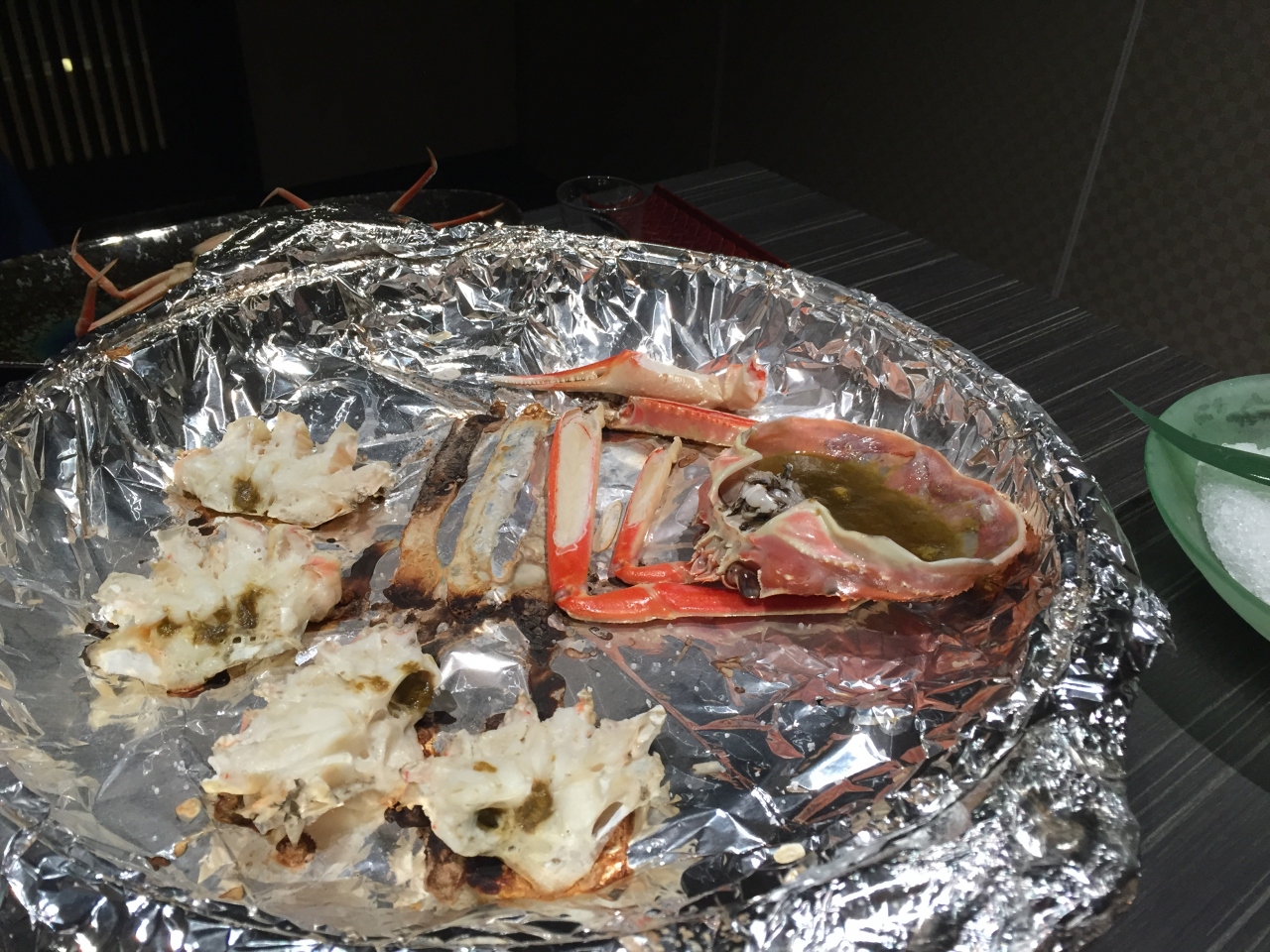 ガサエビと雑炊が付きましたが、調理方法(さしみ、焼、ゆで)が異なるだけでほとんどカニ三昧です。