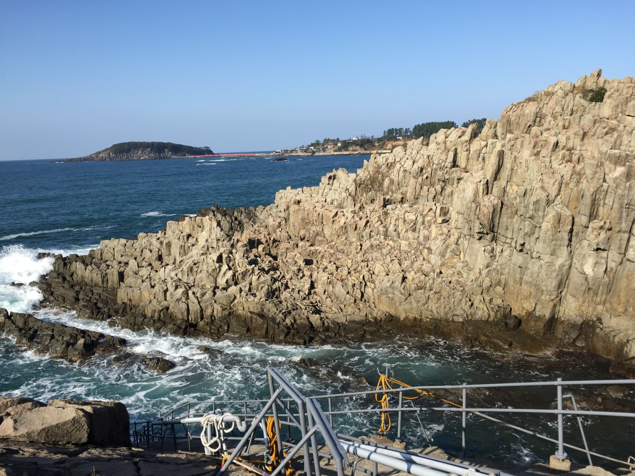 東尋坊で見た柱状節理はほぼ垂直でしたが、ここの柱状節理は斜めになったり、ほぼ横に近い物もありました。地質学に興味がある方には違った魅力を感じる場所なのかも知れません。- 旅行時期