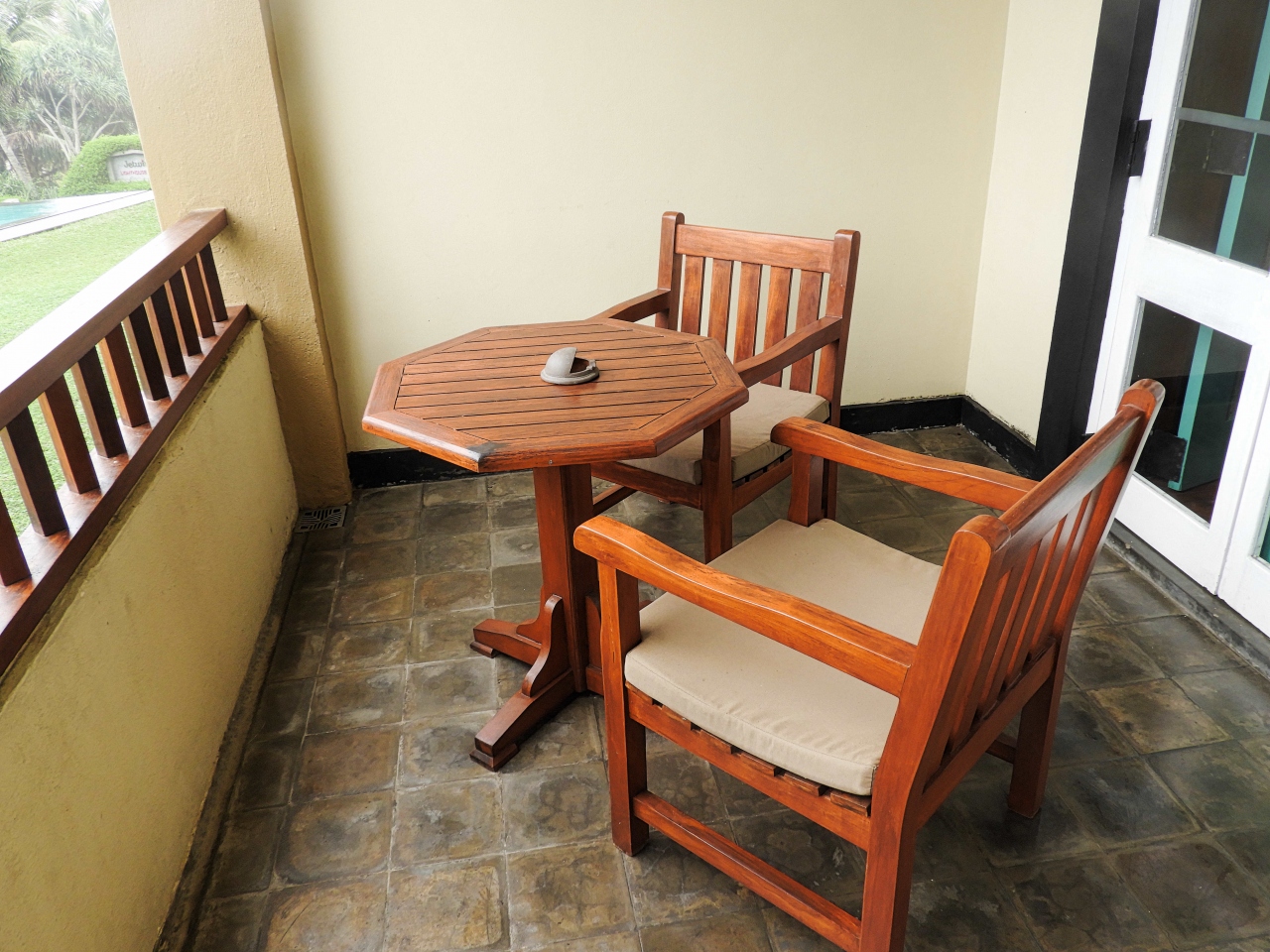 海岸に面した部屋の外には長いすが用意されてました。ただ、湿度が高く、さらに波しぶきもあり使用出来ませんでした。