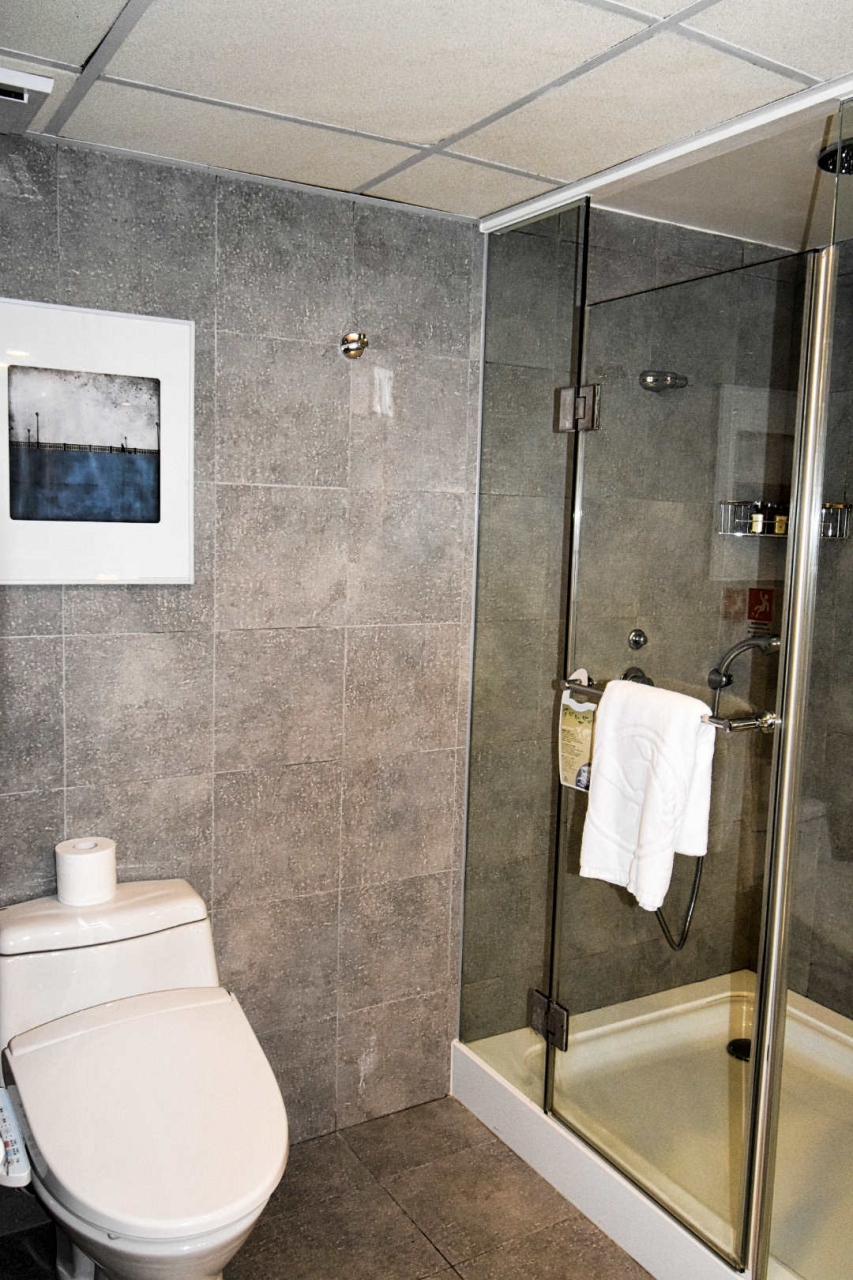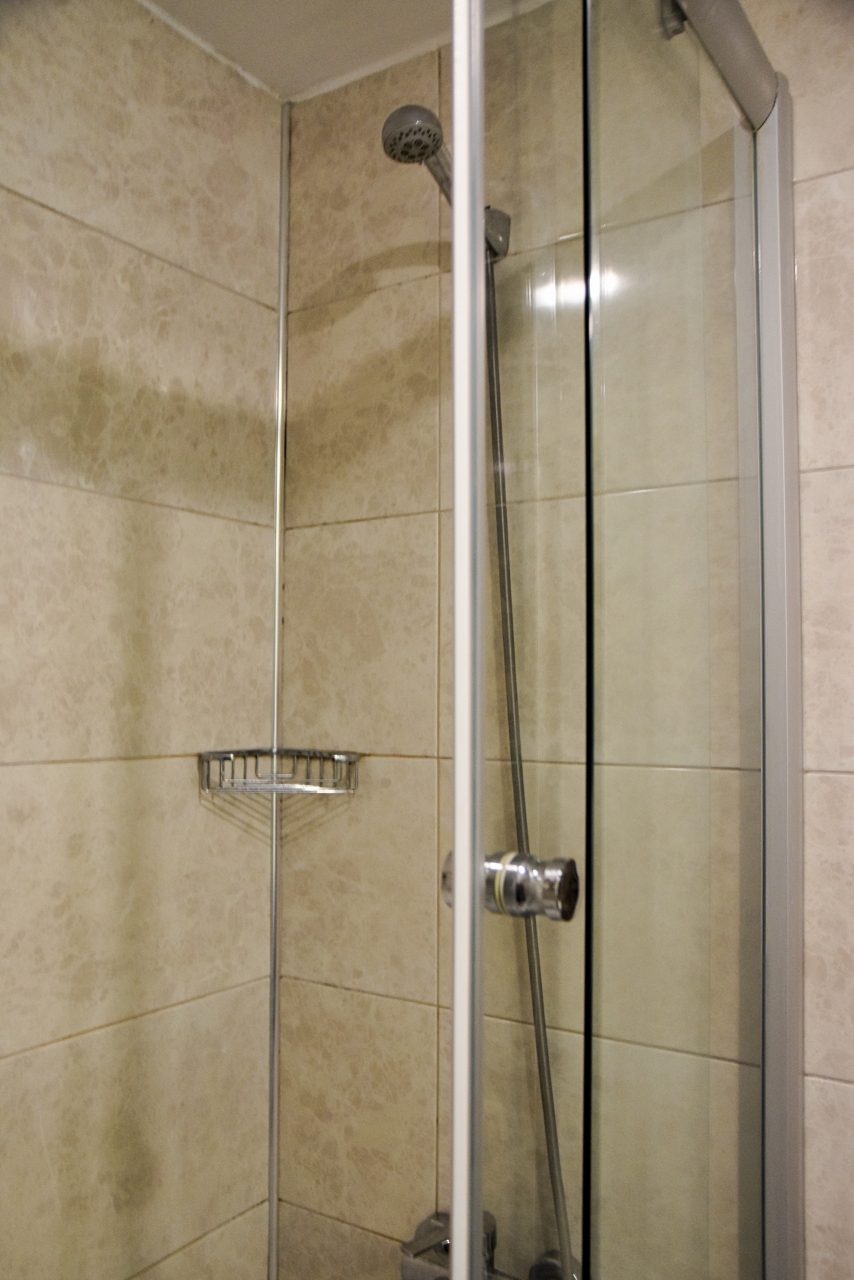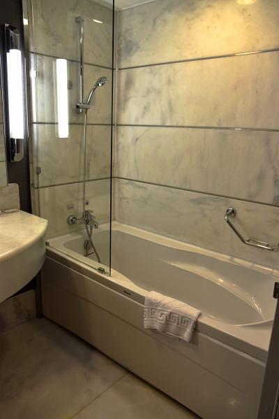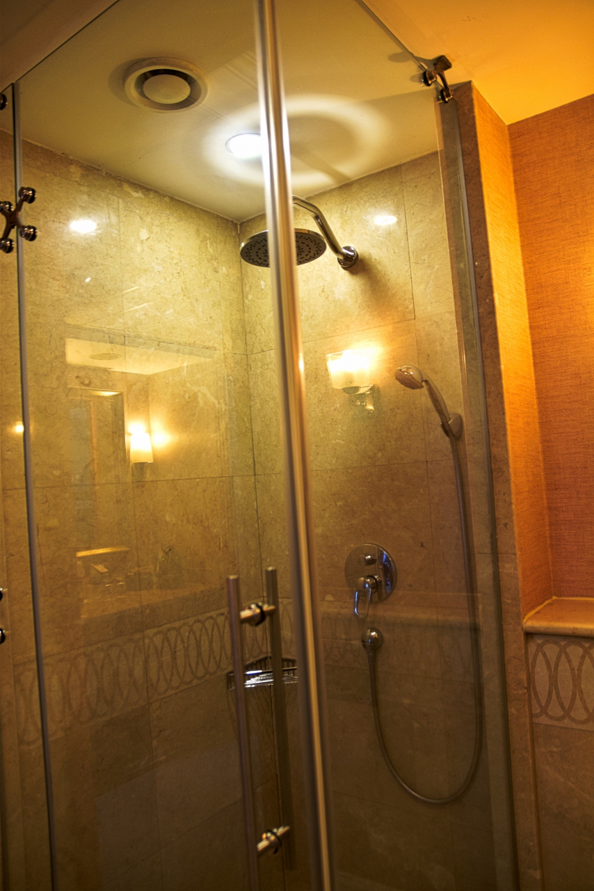 室内面積は充分、確か30㎡以上。ただバスルームが大きすぎるのでは?特に大きいのがシャワーブース、こんなに広さが必要?大きな欧米人でも二人は楽、日本人ならば3人でもOK。
