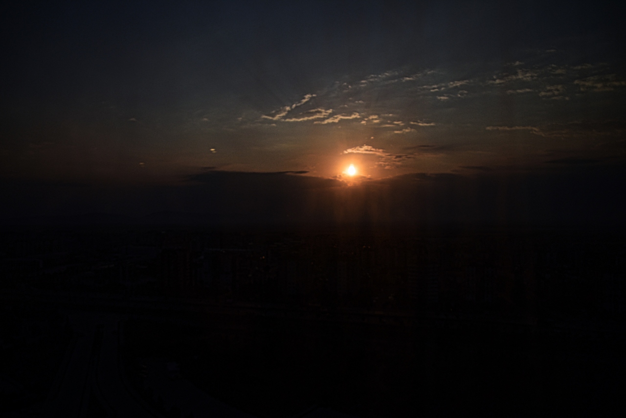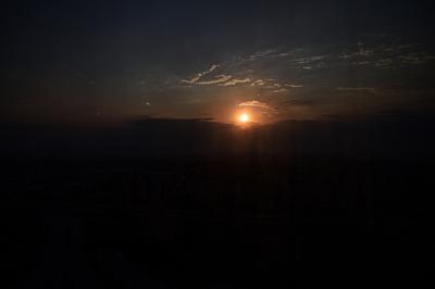 窓ガラスは汚い。縦じまが夕方でも目立つ。せっかく眺望が良いのに自分たちで台無しにしている。