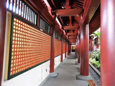 日本の寺院ではまずない、派手なたくさんの赤い提灯が印象的でした。