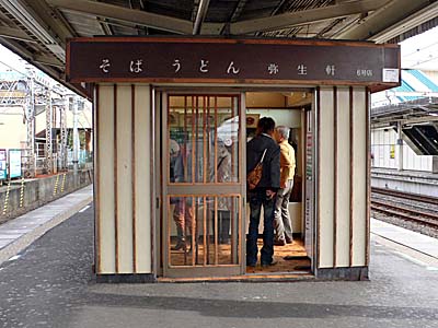 日曜の昼前なのにホームにある2軒の駅そば屋は入れ替わり立ち替わり人が出入りしていて、