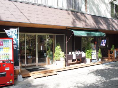 袋田駅から袋田の滝へ向かうバスに乗り終点の「滝本」バス停で降りてから滝まではしばらく歩くのですが、その道にずらりと並ぶお土産屋。その中でもちょっと異彩を放つ、おしゃれな雰囲気のカフェ風なお店です。