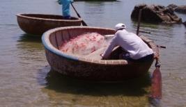 まだ観光地化されていない美しい海をわんこ舟で歌を歌いながら渡る