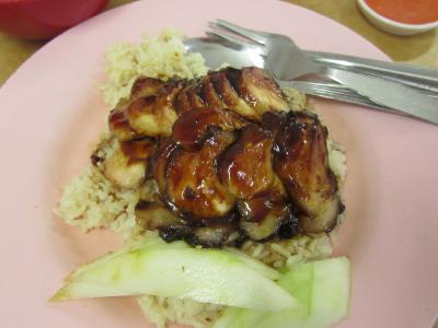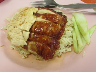 それはともかく,ここの皿飯は美味しい。蒸し鶏と丸焼き鶏と叉焼があり,それらをミックスした皿飯を注文することができる。飯の大盛も可。