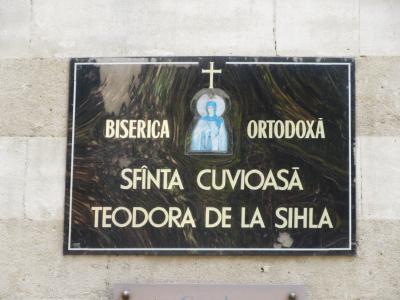 「シフラの聖テオドラ」と申し上げるのは17世紀のモルドヴァにいた正教徒の女性で,最初に聖人に列せられたルーマニア人ということだ。女性の聖人の名を冠しているだけあって,この教会はもともと女子のギムナジウムだったようだ。