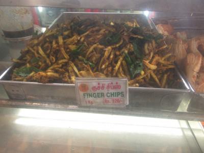 ここで「Finger Chips」というスナックを買ってみた。要はマサラ味のポテトチップスなのだが,味つけが「カップヌードル・カレー味」を食べているかのように濃厚で,さすがインド人と感心した。カレーリーフの葉もたっぷり入っている。