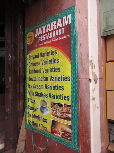 南北のWest Perumal Maistry St.を北へ数分歩くと,「Hotel Sri Sabarees」という,綴りが微妙に違うPure Veg.食堂がある(Google座標:9.918844,78.112681)。こちらも美味しい。店内が広いので,もし「Sree Sabarees」に入れなかったときはこちらに切り替えてもいいだろう。- 旅行時期