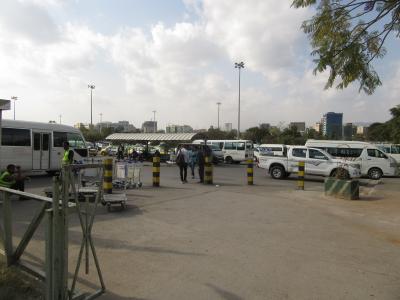 空港の入口には安全検査のゲートがある。日本でいえば高速道路の料金所のような構造になっていて,バスの乗客はゲート前でいったん全員下車し,歩いて手荷物をXレイに通すなどの安全検査を受け,ゲートを通過した先に待っているバスに再び乗り込まなければならない。市内公共バスは(会社が同じなら)どれも同じようなので,下車するときにバスの車両ナンバーを確認しておかないと再乗車が難しいかもしれない。私の場合,車掌が大きなバックパックは車内に置いていってよいと言ってくれて楽ができた。「荷物代」の効果か。