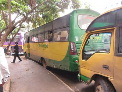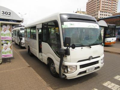 市内から空港へ(あるいは空港経由でそれ以遠へ)行くバスの路線番号は34番である。ナイロビの市内公共バスは「Citi Hoppa」「City Shuttle」「KBS」などのバス会社によって運行されているが,34番については「Citi Hoppa」社と「City Shuttle」社のバスが走っているのを視認した。