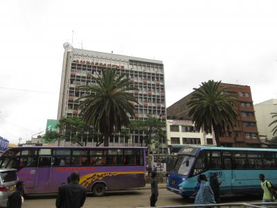 34番の市内側の始発地点はアンバサダーH(AmbassadorまたはAmbassadeur)のすぐ前の路上である。この一帯やモイ・アベニューを挟んで向かいの「Kencom House」の周辺は市内公共バスのハブになっている。バス停としての構造物はなく,バス会社の職員が路線番号・主な行き先・運賃を表示したプラカードを掲げて佇んでいる。ただし,職員がプラカードを掲げるのは当該バスがそこに停車している間だけである。つまり上記の34番バスで言えば,運転手が大混雑のアンバサダー前の路上のどこかにバスを無理やり押し込んで停車させると,プラカード係の職員が34番のプラカードを持ってその地点へ移動し,そこがそのときの34番バスのバス停になるというわけだ。どうしてそこまでしてプラカード係が必要なのかというと,ナイロビの市内公共バスには「車体のどこにも路線番号が表示されていないことがある」という致命的欠陥があるからだ。バス会社の職員でなければそのバスが「34番バス」だと判らないことがあるため,プラカード係が必要なのだ。