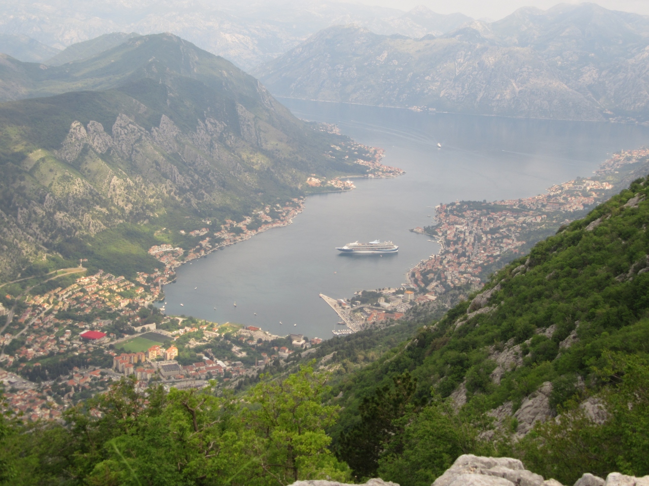 コトル湾は,湾岸からの眺めが素晴らしく,城壁からの眺望も人気が高い。