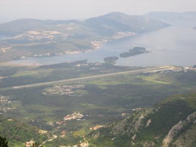 コトルからのR-13道路は,文字どおり九十九(つづら)折りの急坂である。ガードレールは石造りで,この道路の歴史の古さを物語る。これを車で30分ほど上っていくと,コトル湾,ティバット湾,ティヴァト空港(TIV),遠くはヘルツェグ・ノヴィ湾の入口までも見渡す絶景ポイントになる。