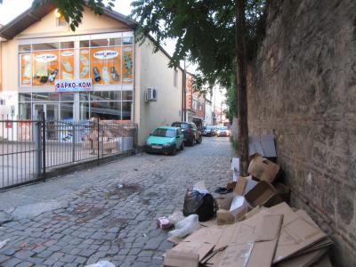 サモヴォドスカ・チャルシャ(職人街)の南側の車道という感じで,通り沿いにあまり目ぼしいものはない。観光客ならサモヴォドスカ・チャルシャを歩くだろうし,ベリコ・タルノボの街に慣れてきたら南側(というか斜面の下)のグルコ将軍通りを歩くだろうから,あまり馴染むことがないかも知れない。- 旅行時期