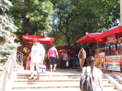 初めてヴェリコ・タルノヴォに来て土地鑑がない場合,バスの車掌などに「パルク・マルノ・ポレ(で下ろしてくれ)!」と告げておけば新市街中心部のどこかで放り出してくれるだろう。