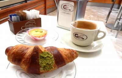 日本からメールで予約していたタクシーの運転手・Robertoがバス停から歩いて案内してくれ、まず、via Generale Ciancio に面したモダンなインテリアのバールへ。同一経営のため、ここでチェックイン。Robertoが「コーヒー飲む?」と聞くのでsi`と答え、飲みながらB&Bのスタッフを待ちました。コーヒー代を払わなかったのだけど、無料サービス?