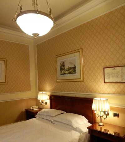 シチリアで5軒の宿に泊まりましたが、バスタブと低料金と駅近の3拍子が揃っているのは、ここだけでした。ただ最後の晩、電気が突然切れました。中庭に面した窓から他の部屋を見ると、灯りが点いているので、自分の部屋だけだと分かり、カードキーを一旦取り出して再度差し込むと、灯りが点きましたが、直後にもう一度、切れました。また、カードを入れ直して復旧させました。- 旅行時期