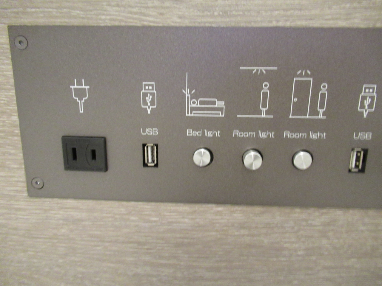 部屋はそれほど広くないですがスタイリッシュな造りでやや使い勝手は良くない感じもしましたが、新しい分、USBなどもありました。