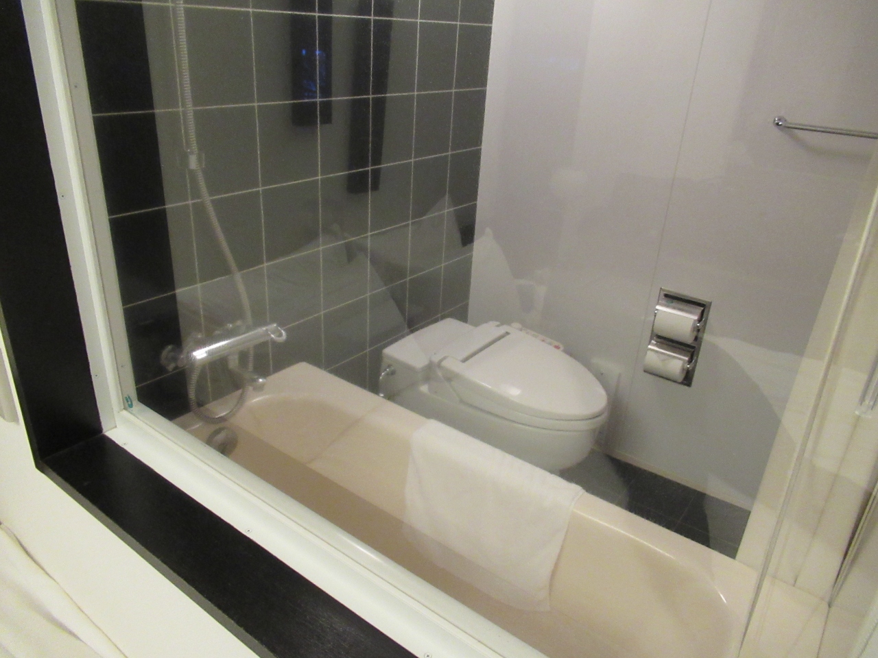 ホテル自体は新しくできたホテルで、スタイリッシュな感じ、ベッドサイドも機能的にできていますが、部屋はやや狭く荷物を置くと歩くのに窮屈かも知れません。ただバスとトイレが別なのがいいですね。