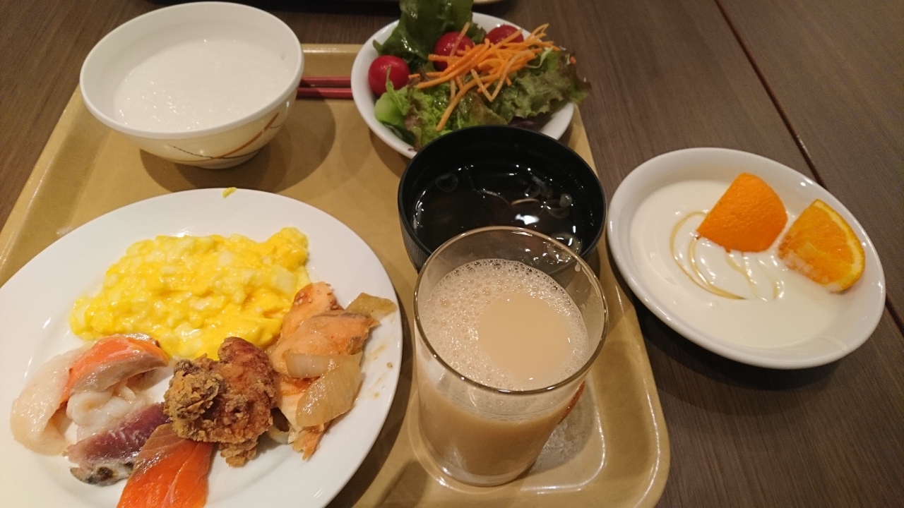 朝食場所はそれほど広くないですがゆったりとした配置です。客室は普通のビジネスホテルという感じの部屋でした。