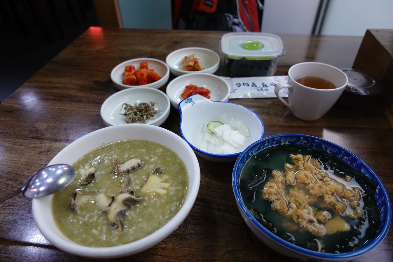 おかゆはあわびが惜しげもなく入っており満足。味はちょっと薄くてごま油が香ります。韓国海苔やキムチが付いてくるので一緒に食べるとちょうどいいかんじ。- 旅行時期