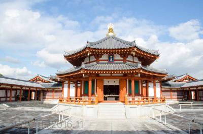 玄奘三蔵院伽藍は薬師寺白鳳伽藍の車道を挟んで北側に位置していて、平成3年に建立された新しい伽藍です。伽藍内は薬師寺境内同様白と朱色がよく映える造りとなっています。伽藍自体はそれほど広くないので短時間で見学できます。