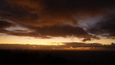 せっかくのお正月ハワイなので、初日の出を見にココヘッドまで行きました。早起きして真っ暗な中到着したらやはりローカルがたくさんいました。本当に真っ暗なので狭い駐車場停めるのに気を使います。見えない岩?に車をこすってしまいました。残念ながらかなり雲が多かったので頂上まで行かず途中で見ました。快晴なら最高だと思います。