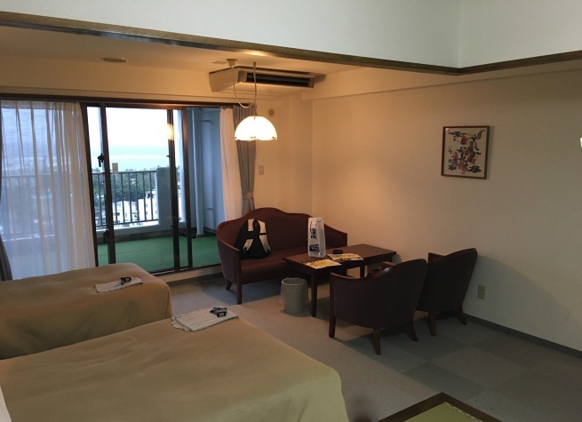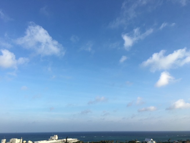 お部屋は9階でしたが、ベランダも広く、窓からは東シナ海を眺めることができます(少し離れていますが)。