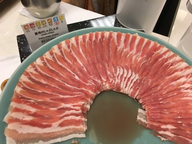 圧巻は沖縄豚のしゃぶしゃぶ。。。自分でしゃぶしゃぶしてお野菜を添えていただきます。
